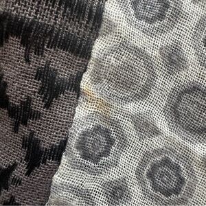 Elevate your style with this elegant gray and cream patterned men's scarf. Perfect for adding a touch of sophistication to any outfit.