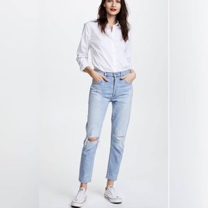 These jeans have been worn with love, gaining a relaxed charm as the knees have slightly opened up over time. While maintaining their original allure, the jeans offer a great fit that's perfect for any occasion. Embrace the character of pre-loved denim while still enjoying the quality and style you adore❤️