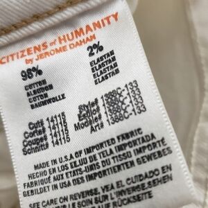 Citizens of Humanity Thompson Medium Rise 29" Skinny Jeans Size 26 Off White Jeans Zipper and button closure