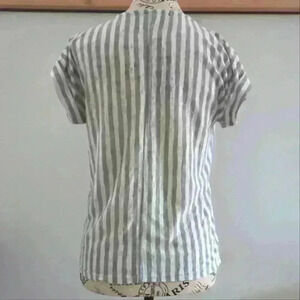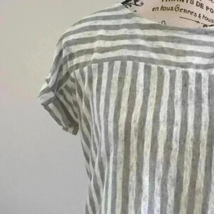 COIN 1804 | Women's Grey/White Slub Striped Rolled Short Sleeved Top