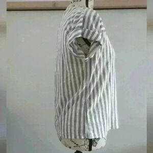 • Style: Horizontal stripes on top with vertical stripes throughout rest of top, rolled sleeves, light and breezy, pullover, distressed material, lightweight and soft, breathable