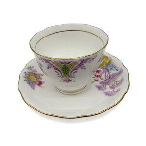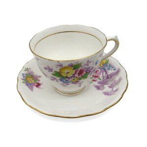 COLCLOUGH Bone China FLORAL Tea Cup and Saucer Gold Trim Vintage