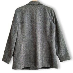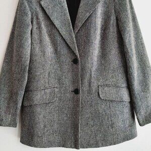 • Classic single breasted, two button closure blazer jacket in black and white micro grid pattern that makes the cloth appear grey. Fully lined.