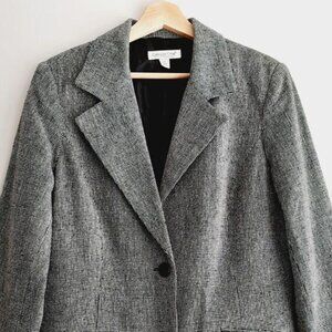 COLDWATER CREEK 100% Silk Micro Grid Classic Blazer Jacket Sz 12