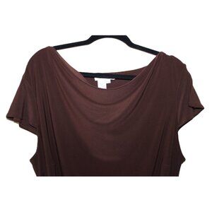 Add timeless elegance to your wardrobe with this retro Coldwater Creek tunic-style blouse, designed for versatility and comfort. This plus-size blouse (22W) is made from a soft, stretchy fabric blend that flatters the figure with ease. The rich brown color and boat neck design offer a sophisticated minimalist aesthetic, perfect for casual outings, business wear, or even cocktail events. Featuring cap sleeves with a subtle slit, this blouse balances relaxed comfort with a touch of flair. The sewn-in belt cinches the waist, creating a tailored silhouette that enhances your curves while ensuring comfort. This blouse is ideal for spring and summer seasons, and its breathable material makes it perfect for all-day wear.