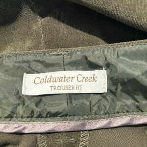 COLDWATER CREEK Sz 16 Pants Micro Corduroy Flare Bottoms Zipper Closure Trousers. Lovely olive green colour. Soft and sleek. Dress up or down.