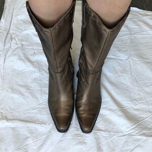 Coldwater Creek Metallic Bronze Leather Cowboy Boots Size 6.5