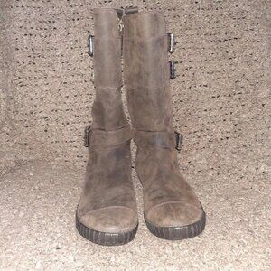 COLE HAAN AIR-Distressed Brown Nubuck Leather Zip Waterproof Boot-Sz 6-Excellent