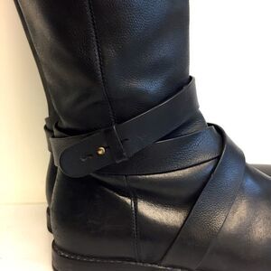 COLE HAAN Black Flat Leather Riding Boots With Ankle Strap 7