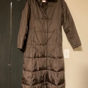 Long puffer coat by COLE HAAN….size S. Super light weight…down filled. Please note there is a tear in the bottom of the lining in this piece which can easily be repaired.