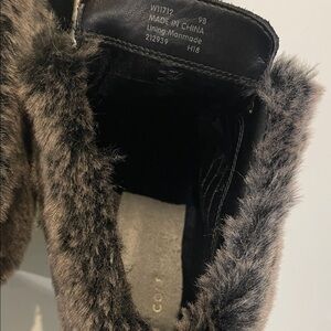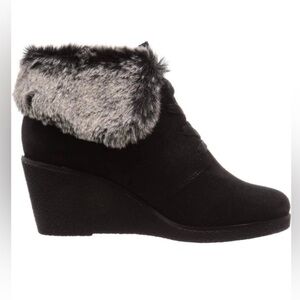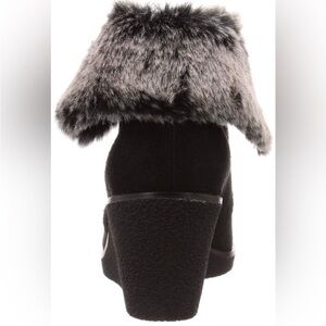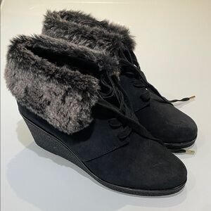 COLE HAAN Wedge Heel Lace Up Ankle Winter Boots with Faux Fur Cuff