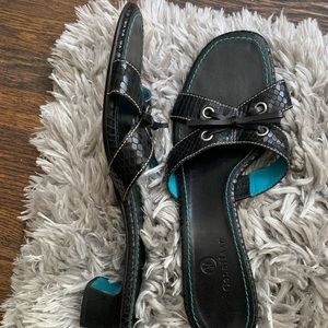 Cole Haan Delray Leather Slide Slipper Sandals Black and Blue Vintage