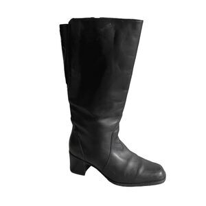 COLLEGE Black Leather Waterproof Winter Lined Snow Tall Boots Heel 10
