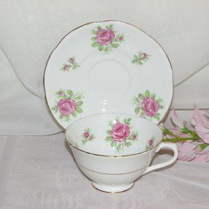 COLLINGWOODS Vintage Teacup Bone China Cup & Saucer Pink Roses Cottagecore
