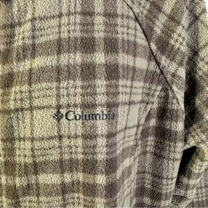 COLUMBIA BROWN FLEECE JACKET PLAID PATTERN
