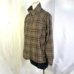 COLUMBIA BROWN FLEECE JACKET FRONT ZIPPER PLAID PATTERN PLUS SIZE WOMEN SIZE 2X