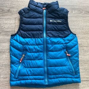 COLUMBIA Boys Fleece Blue Reversible Puffer Outdoor Vest Camping Travel Fall