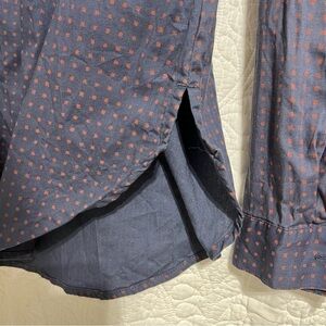 This hoodie is perfect for everyday. Drawstring adjustable hood makes it comfortable and easy to wear, roll up sleeves with tab holders and chest pockets add a touch of style. Fun print while still neutral-Blue with orange tiny flowers material with some stretch. 98% cotton, 2% elastane