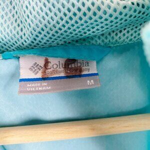 COLUMBIA Windbreaker Jacket Womens Size Medium Blue Hooded Nylon Outdoor Rain
