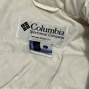 COLUMBIA Womens White Down Vest Size Small Zip Up 2 Pockets Quilted