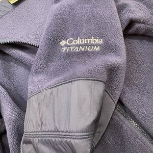 Beautiful fleece jacket by Columbia in very good pre owned conditions!! Padding around the elbows and neck up zipper.