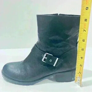 LORD & TAYLOR BLACK LEATHER ANKLE ROUND TOE BOOTIES COMBAT BOOTS BLOCK HEEL 39