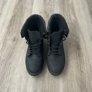 Similar to timberland boots but not as bulky. Very warm and fuzzy on the inside. Perfect for winter/fall weather