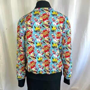 COMIC BOOK BOMBER JACKET CARTOON POW POP GRAPHIC BLUE RED MULTICOLOURED MEDIUM