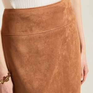 COMMA pencil skirt in faux suede. Color: Camel. SIZE: 42 (12). Waist measures 17.25".Pencil skirt is made from soft and comfortable faux suede. The short and slim fit accentuates the feminine silhouette in a flattering way. High quality stretch, jersey lining, mid rise.Decorative stitching, back zipper closure. Fabric Content: 95% polyester, 5% elastane.Skirt is in very good pre-owned condition. Minor overall wear. No stains or rips. Retail: $ 80 Euro. NOTE: Due to variances in lighting and computer settings, the color may appear slightly different than the actual garment.