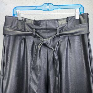 COMMANDO Faux Leather Pants Women's M Paper Bag Tie Waist Crop Trouser Black