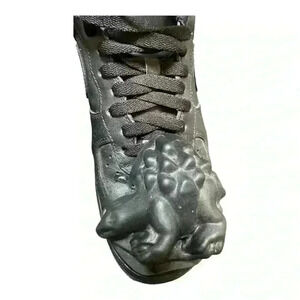 In collaboration with Comme des Garcons, Nike re-imagines the iconic Air Force 1 low-top trainers with a contemporary twist. Channeling the Japanese label's idiosyncratic style, they showcase a minimalist, tonal color palette and are realized in luxuriously smooth leather with a bold 3D dinosaur design for a distinctly modern appeal.