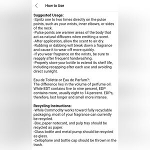 The fragrance notes you smell will evolve throughout your wear. In other words: Your "First" impression when you spray the scent will differ from what you "Then" smell 10 minutes later or what you "Finally" smell in the hours to come.