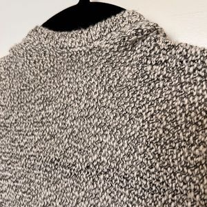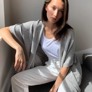 Oversized, knitted cardigan with a cape-inspired silhouette. It's knit with a cotton-blend yard in a textural purl stitch