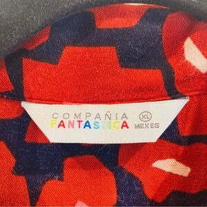 COMPAÑIA FANTASTICA Sz XL Graphic Floral Peplum Long Sleeve Pocket Tunic Top