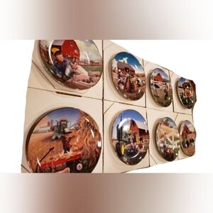 8" Rimmed in 23KT Gold Limited Edition This listing is a set of collectors plates by well-known artist Donald Zolan that shows life on the farm with children, puppies, farm animals and John Deere Tractors. His color choices are so vibrant and the scenery beautiful. He captures the beauty of farm life from a youth point of view. This is a rare find to have all 8 in the set. The plates are 8" rimmed in 23 karat gold. 75 firing days only for this set.