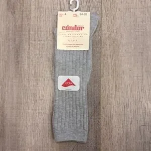 Brand new grey ribbed high socks by brand Condor Barcelona. Made in Spain. Size 4 / For shoe size 24-26
