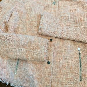 Beautiful peach blazer by designer Conrad C. Size 8. Made in Canada. Great condition. See photos for condition and measurements.