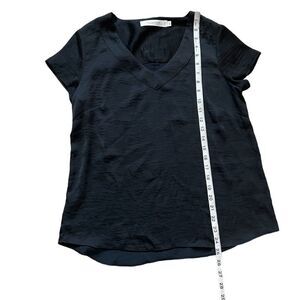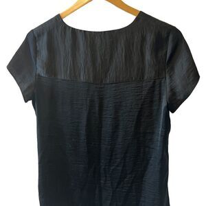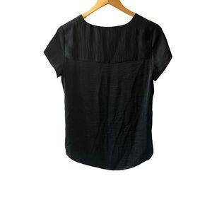 CONTEMPORAINE Black Sateen Finish V Neck Short Sleeve Dressy Top S