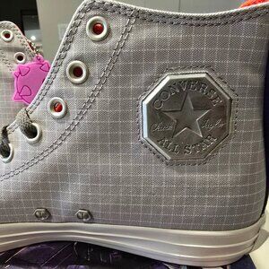 The world of heroic Autobots and evil Decepticons reaches a new Converse collection to celebrate the 40th anniversary of Transformers. Bring the world of heroic Autobots and evil Decepticons to the court with the Megatron hi top sneaker. The limited-edition design blends court performance and modern style with unique graphics.The limited design features graphics and artwork from the original series, including the Decepticons shield logo and Megatron's go-to weapon, the energon mace.