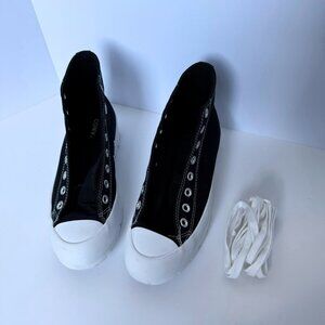Like walking on clouds! These lug-soled Chucks are such a fun spin on the classic Converse high top sneaker. The platform gives a little extra height and makes them extra comfortable to walk in, too. Black and white with cotton canvas upper and classic Chuck Taylor All Star ankle patch.