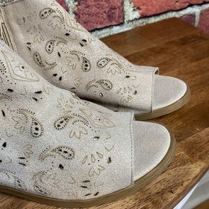 Complement your ensemble when wearing the Topaz sandal from Cool by Coolway. The open heel and printed vamp will pair perfectly with distressed jeans and a knotted tee! Made with soft suede leather featuring paisley design.