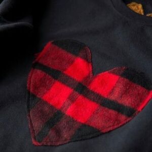COPIOUS Fashion Buffalo Plaid Lumberjack Heart Sweatshirt Black Size Large NWT