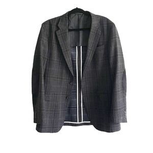 COPPLEY Plaid 2 Button Front Long Sleeve Blazer Jacket With Corduroy Elbow Patches