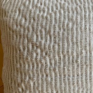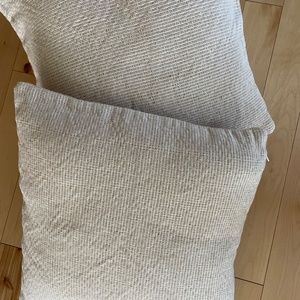 20 inch by 20 inch H&M Cotton and jute pillow covers. 6 pillow covers in patterns all in beige/off white. Pillow covers have been machine washed. I have 4 inserts available at no additional charge, just message me upon purchase.