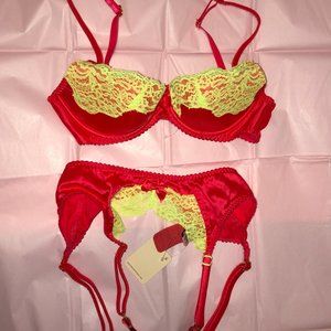COPY - Agent Provocateur Pink & Yellow Novah Bra& Suspender