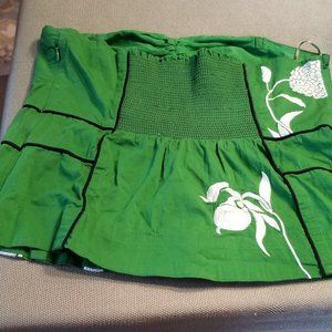Stunning kelly green top with white embroidered flowers. Invisible side zipper and partial elasticized back. Lined with no issues. Floreat for Anthropologie. Vintage, cotton construction.