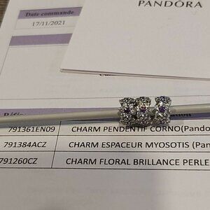 COPY - Auth Pandora *Retired* Forget Me Not Flower Spacer w/ Purple Zirconia 79…