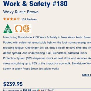 COPY BNIB Blundstone Work & Safety #180 Waxy Rustic Brown, AUS 6, Wmns 9 / Mns 7