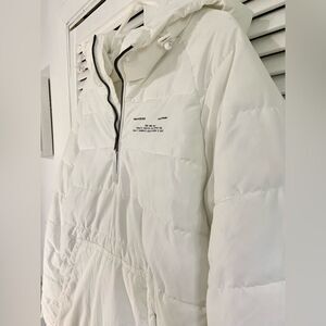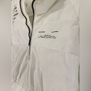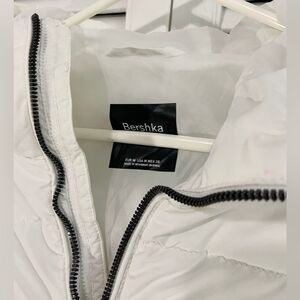 Fresh and Clean Unisex Bershka white puffer half zip jacket, quality is like new, with pockets and half zip on one side