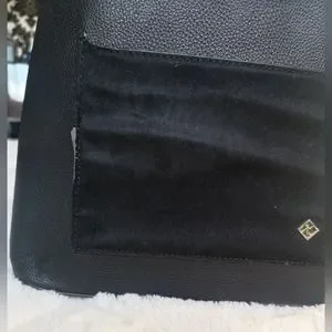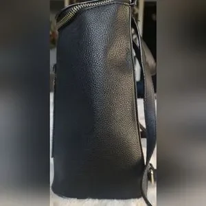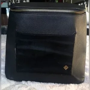 Call It Spring black backpack. Made of false leather. Square shape. Pocket in front and pockets 2 inside. One scratch on a side and front pocket has a little damage on a side. Over all still in good condition to be used by a teenager or just to take it somewhere and not be afraid to damage a fancy bag or loose it.
